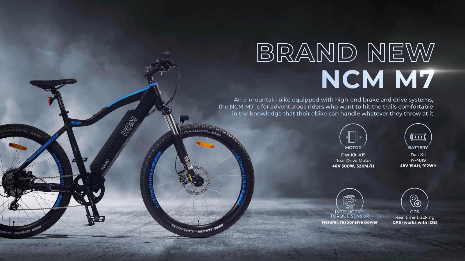 An e-mountain bike equipped with high-end brakes, drive systems, and torque the NCM M7 is for adventurous riders who want to hit the trails comfortable in the knowledge that their e-bike can handle whatever they throw at it. Fitted with a location tag within the battery, feel safe knowing your e-bike is just a convenient check away.